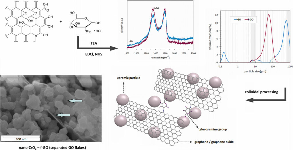 Functionalization of graphene oxide surface by conjugation with glucosamine and analysis of interactions occurring in nanoceramic-graphene heterostructures